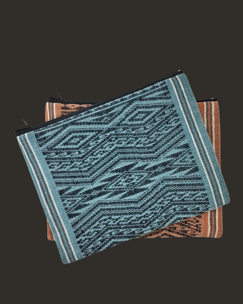 Handwoven from saa—the inner bark of the mulberry tree—the ALTAN Pattern Clutch embodies a material history that is both rich and evocative. Layered geometrics and subtle gradations recall coastal shorelines and breeze-swept azure vistas.