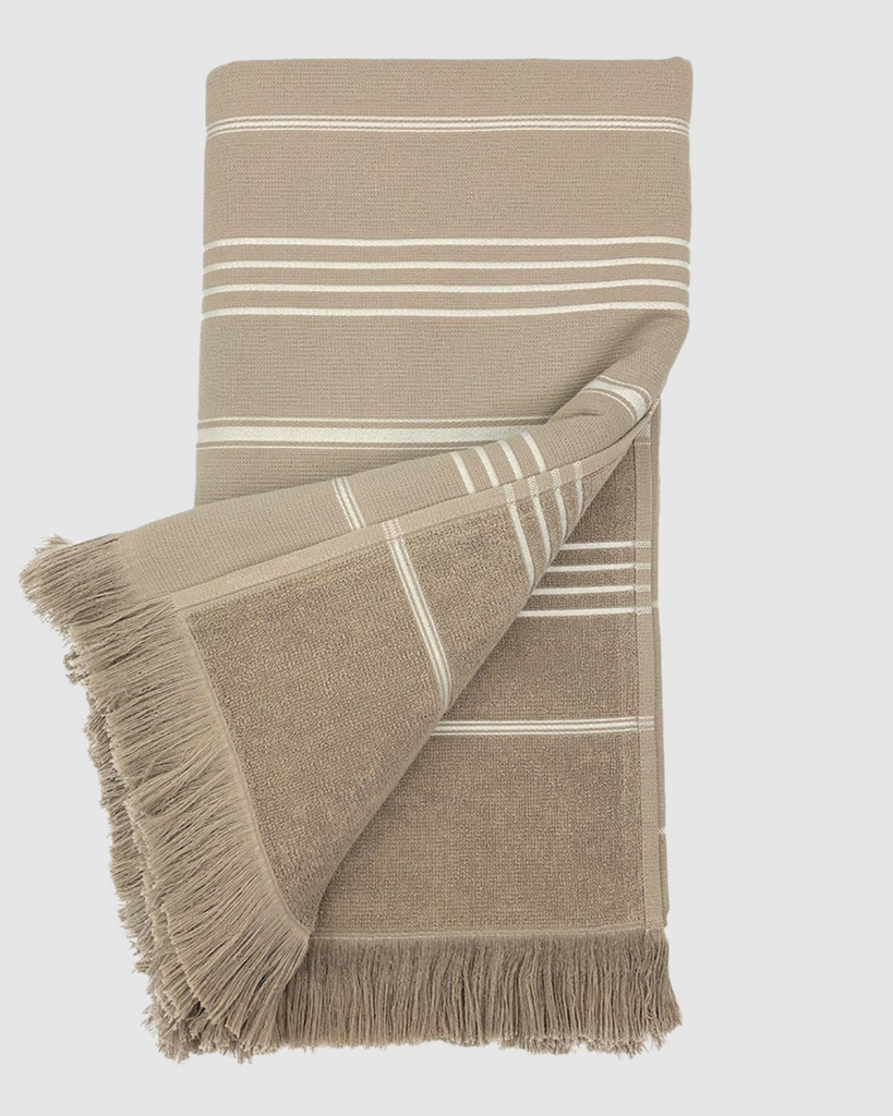 The ATRIA Stripe Classic Terry Towel blends the best of two worlds: one side features plush, absorbent looped terry, and the other a smooth, Turkish weave. Lightweight and quick-drying.